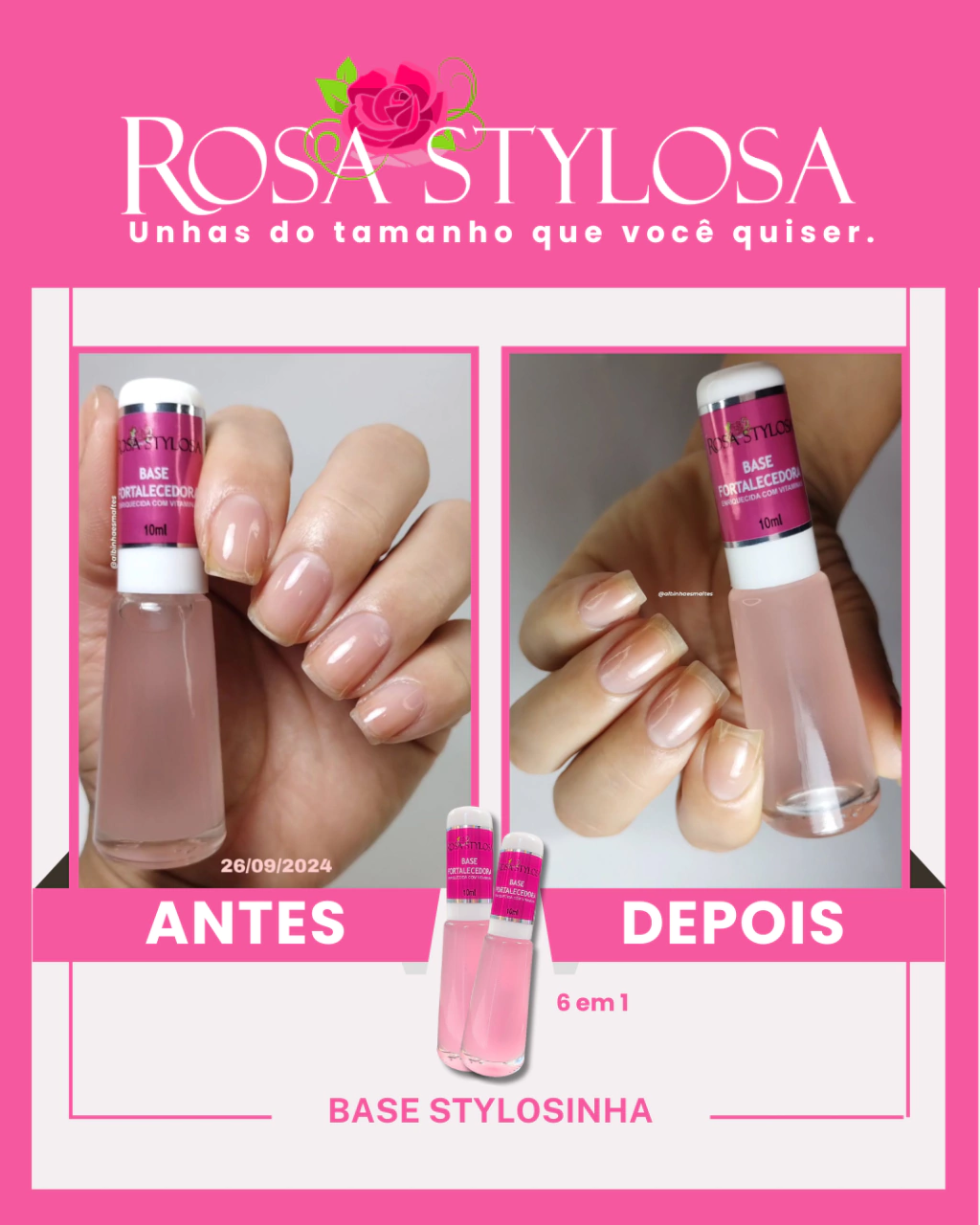 🔹 A Base Fortalecedora fortalece, estimula o crescimento e evita quebras e descamações, graças à sua fórmula rica em vitaminas e ativos poderosos.